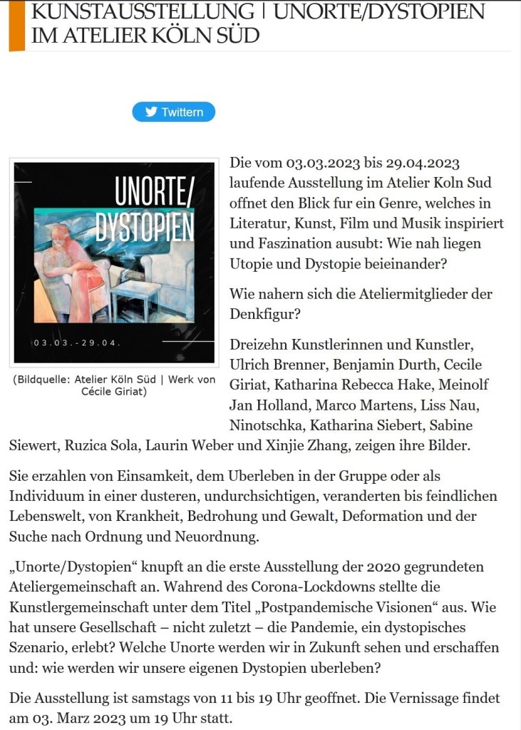 Mars – Avril 2023 Exposition collective « Dystopien / Unorte » Galerie Atelier Köln Süd